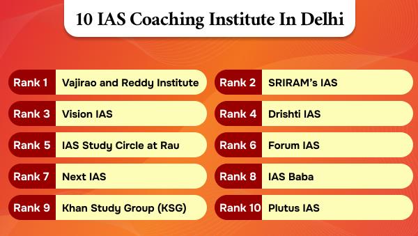 Q. Which are the IAS Coaching Institutes in Delhi for UPSC preparation? In Delhi, so many coaching institutes are available for UPSC preparation but Vajirao and Reddy IAS, Drishti IAS, and Khan Study Circle (KSG) are among the choices due to their high success rates and excellent faculty.
