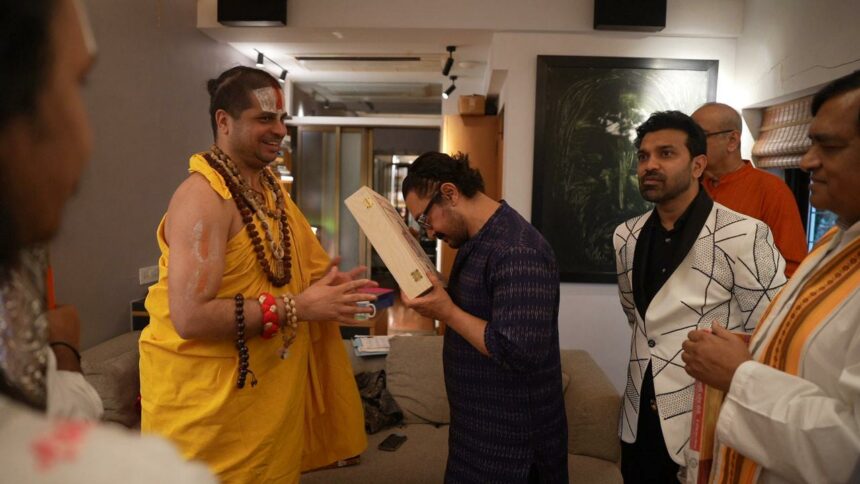 During the meeting, Jagadguru Maharaj presented Aamir Khan with a copy of the Bhagavad Gita and conveyed Prime Minister Narendra Modi’s vision of making India a developed nation by 2047.