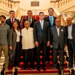 IMAGE CAPTION : Paraguay President Santiago Peña met Hinduja family members (Prakash Hinduja, Ajay Hinduja and Ashok Hinduja) for an economic partnership The Hinduja Group is noted ..