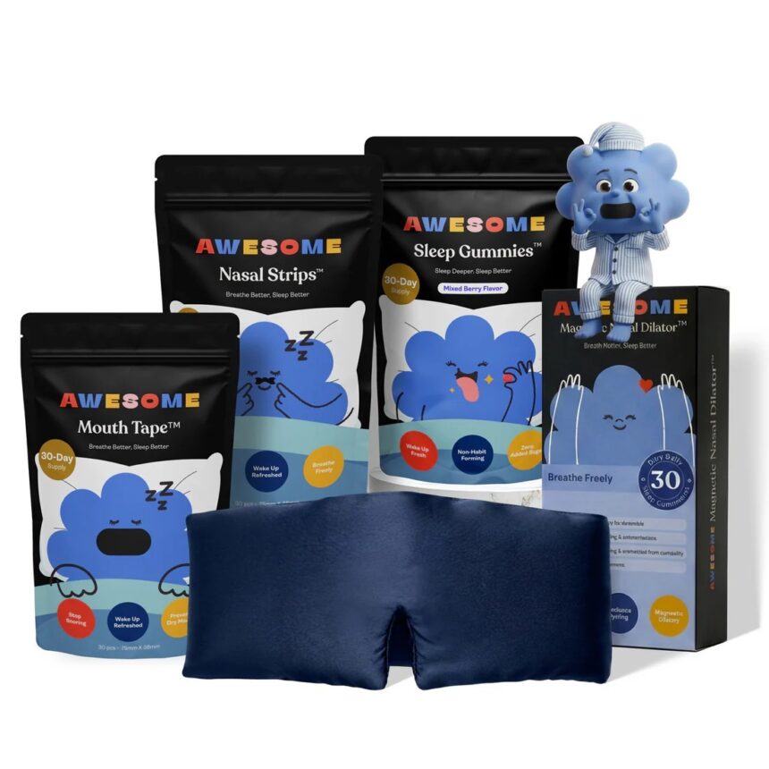 Awesome Sleep™ is building an end-to-end sleep wellness platform designed to help people breathe better, fall asleep faster, sleep deeper, and wake up feeling fresh. The platform includes Awesome Mouth Tape™, Awesome Nasal Strips™, Awesome Nasal Dilator™, Awesome Sleep Gummies™, Awesome Eye Mask™, Awesome Space Mask™, Awesome Sleep Shot™, and Awesome Wind Down Glasses™. Together, these solutions are designed to support breathing, relaxation, darkness, and deeper nighttime recovery.