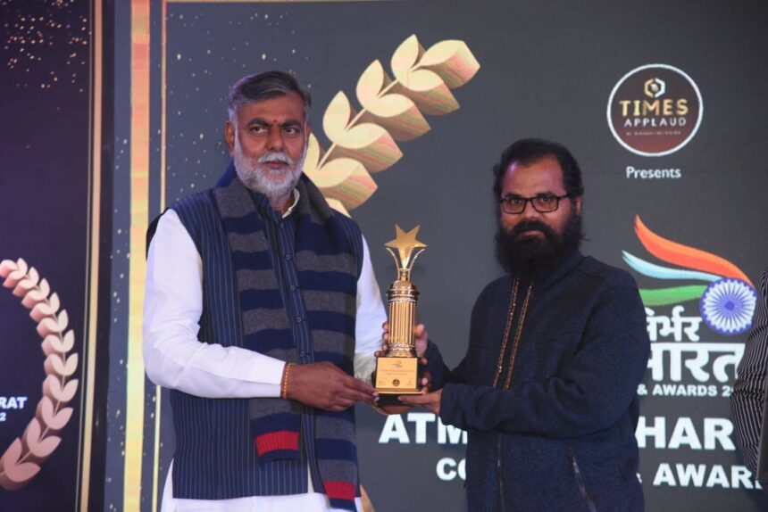 Best astrologer in India award received by union minister Prahalad Singh Patel of India.