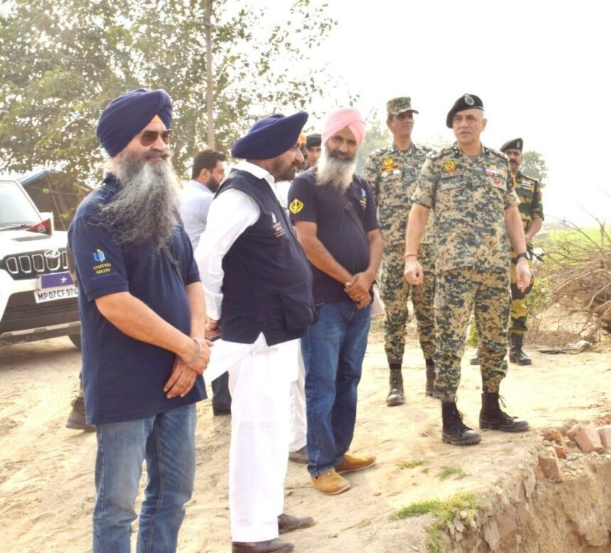 Firozpur (Punjab) November 3,2025:-Mr. Vijay Rana, DIG, BSF (Punjab Frontier), Ferozepur, has strongly praised the relief work being carried out by the volunteers of the organization United Sikhs to help the flood victims in the border villages of the district. Today, after a special meeting with S. Sukhwinder Singh, Chief of United Sikhs, and his associates, Mr. Vijay Rana, DIG, BSF (Punjab Frontier), spoke to reporters and said that United Sikhs’ volunteers made a significant contribution in providing essential items like food, drinking water, clothes, medicines, fodder for cattle, and boats on a priority basis to the flood victims in various districts of Punjab, especially the border villages of Ferozepur district, in collaboration with BSF officers and personnel.