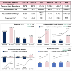 First quarter of positive reported PAT; INR 71.5 crore in Q3FY26 vs. loss of INR 26.9 crore in Q3FY25 Standalone Adjusted EBITDA at INR 190.8 crore, up 169.7% YoY Standalone Revenue ..
