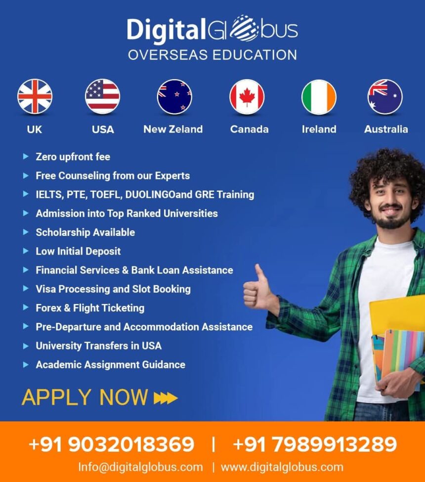 Headquartered in Hyderabad, DigitalGlobus Overseas Education provides end-to-end support for admissions, visas, and scholarships at reputed universities. digitalglobus.com
