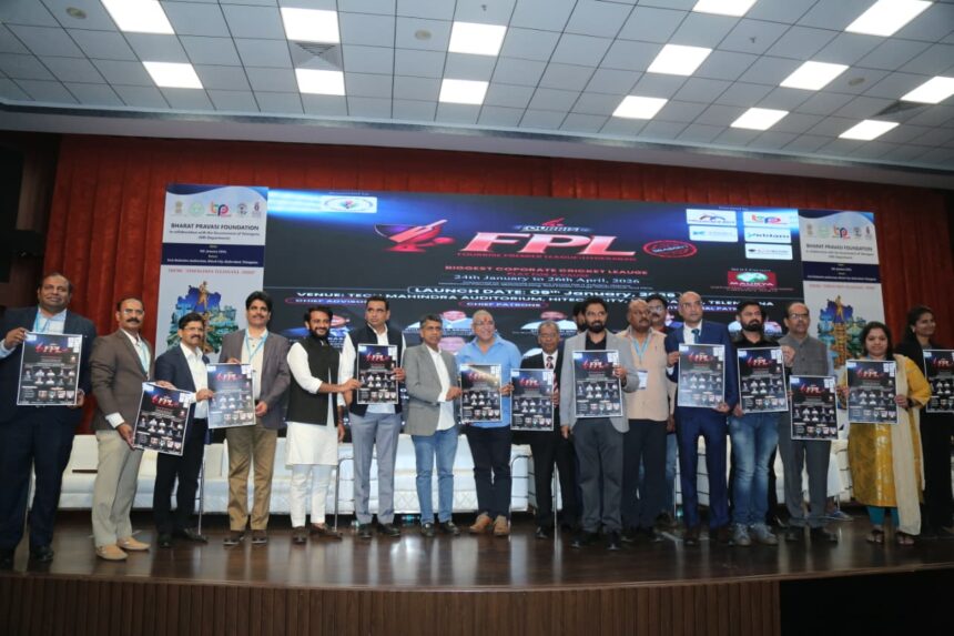 Hyderabad, January 10, 2026: FOURRISE Sports LLP officially launched the first season of the Fourrise Premier League (FPL) – Hyderabad on Friday night, January 9, 2026, at the Tech Mahindra Auditorium, HITEC City. The grand launching ceremony marked the formal announcement of Hyderabad’s biggest professionally managed corporate cricket league, built on the philosophy of “Play for a Cause.”