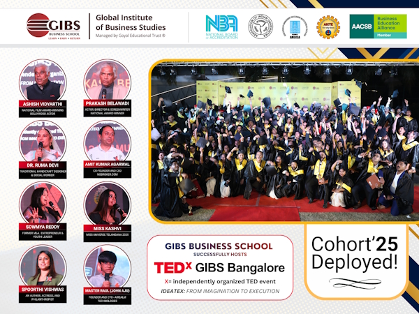 Bengaluru: 19.01.2026 : GIBS Business School, Bengaluru, recently concluded two major institutional milestones—the TEDxGIBS Bangalore event held on 10 January 2026, and the PGDM Convocation Ceremony 2025 conducted earlier on 27 December 2025. Together, these events reflect GIBS’ continuing focus on thought leadership, academic excellence, and holistic student development.