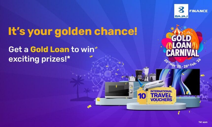 18th December, 2025:-Bajaj Finance has announced the Gold Loan Carnival, a limited-period rewards campaign that allows customers to access quick funds against their gold jewellery while also standing a chance to win attractive prizes. The campaign runs from 25 November 2025 to 28 February 2026 and is designed to add value for customers without altering the existing rate of interest against gold loans.