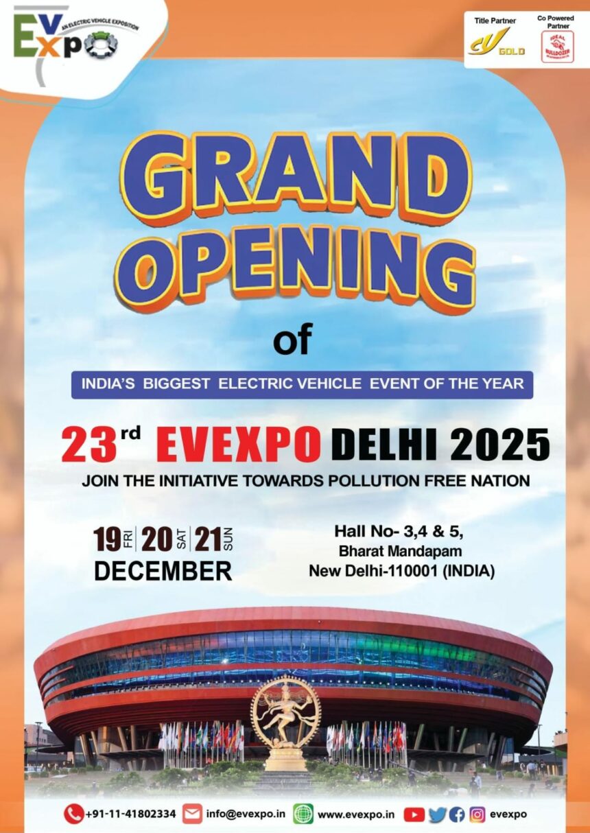 New Delhi, 19th December 2025 – Today marks a historic moment in India’s electric mobility journey as the 23rd EVEXPO opens its doors at Bharat Mandapam, Pragati Maidan. This three-day mega exhibition brings together global innovators, industry leaders, and policymakers under one roof to showcase cutting-edge electric vehicles, breakthrough technologies, and sustainable solutions shaping the future of transportation.