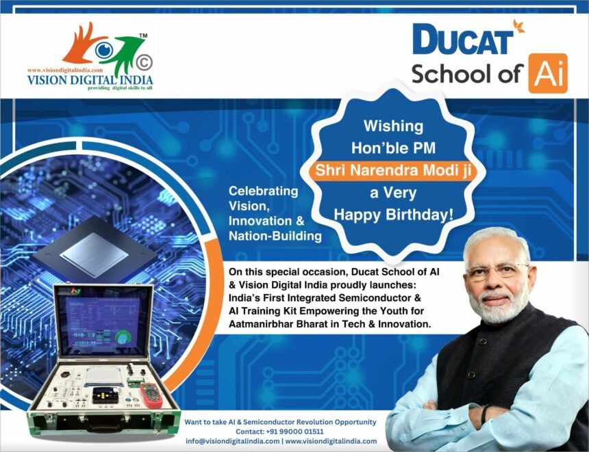 Taking inspiration from his visionary leadership, DUCAT School of AI and Vision Digital India are proud to announce a breakthrough initiative that supports India’s growing capability in Semiconductor and Artificial Intelligence (AI) — a pivotal step towards achieving complete self-reliance under the Aatmanirbhar Bharat Mission.