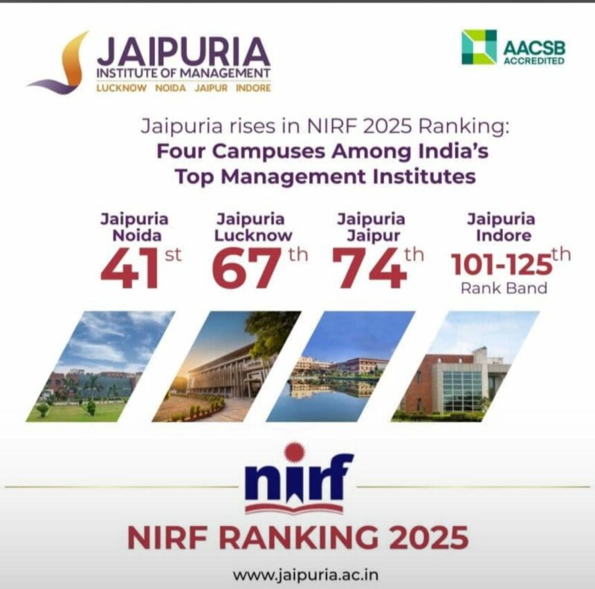 Jaipuria Institute of Management Rises in NIRF 2025 Rankings: Four Campuses Among India’s Top Management Institutes