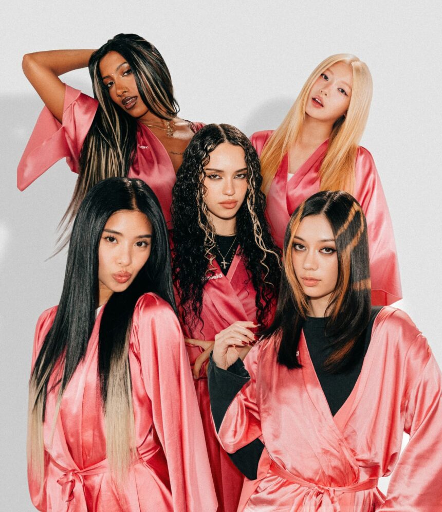 A: The “PINKY UP” era is all about giving main character mindset, reminding yourself that you belong in every room you walk  into. We are flipping the script on traditional “proper” etiquette and turning it into something modern and cool. Hair is a  huge part of that. The dramatic looks aren’t just bold for the sake of being bold. They’re intentional. We wanted our outside  to match where we are on the inside: more expressive, more us. We always try to find duality within out music, and the look for this “PINKY UP” era is no different balancing elegance, with edge and attitude perfectly.