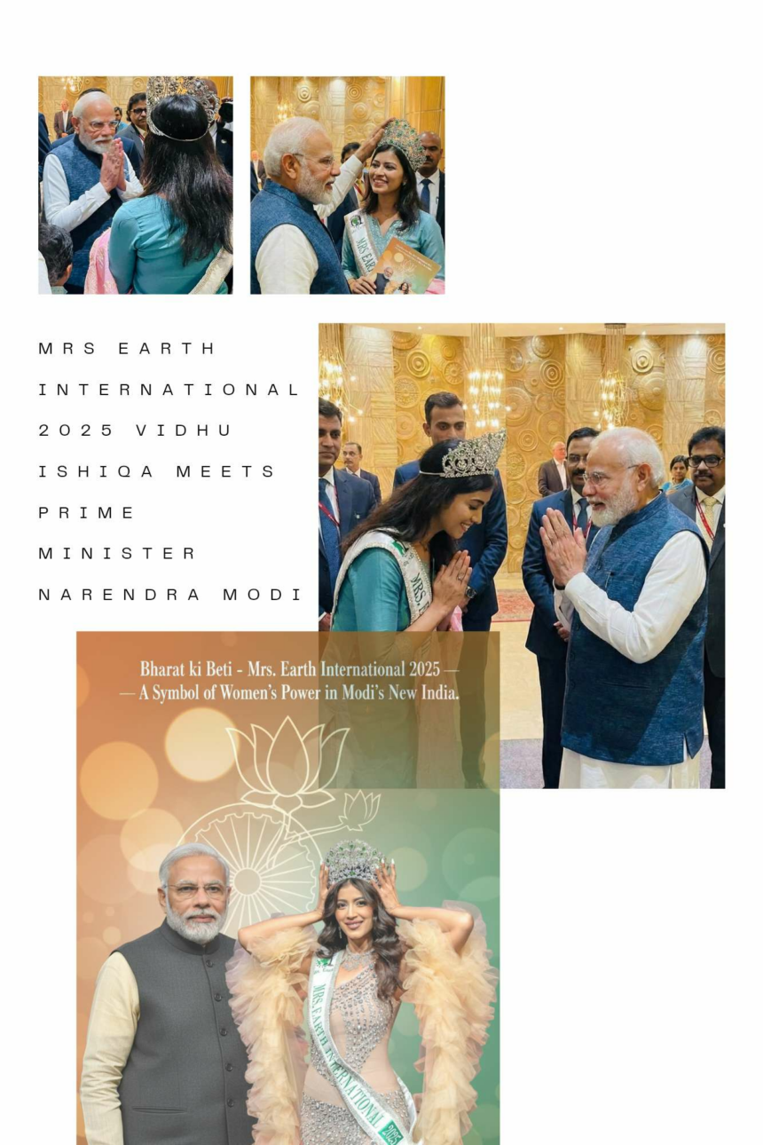 Vidhu, who has inspired countless women through her journey from a small town to the international stage, says the moment with the Prime Minister felt like a beautiful affirmation of every step she has taken. His words of appreciation added a special radiance to her Mrs Earth International crown.
