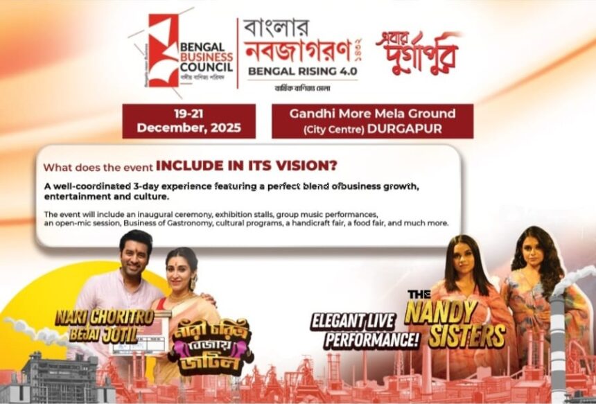 The Bengal Business Council is proud to announce Nabajagoron 4.0, its annual flagship trade fair, scheduled to take place from December 19 to 21, 2025, at the Corporation Ground, Gandhi More, City Centre, Durgapur. This year’s edition promises to be an exciting event, bringing together business, culture, and creativity under one roof.