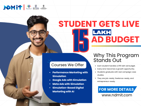 22/Sep/2025 – National Digital Marketing & Data Science Institute and Training (NDMIT), one of India’s most innovative institutes in data science & digital marketing education, has unveiled a revolutionary Simulation-Based Training model. Under this approach, each student is provided with a ₹15 lakh advertising budget to run and manage live campaigns, ensuring that learning is not limited to theory but rooted in real-world execution.