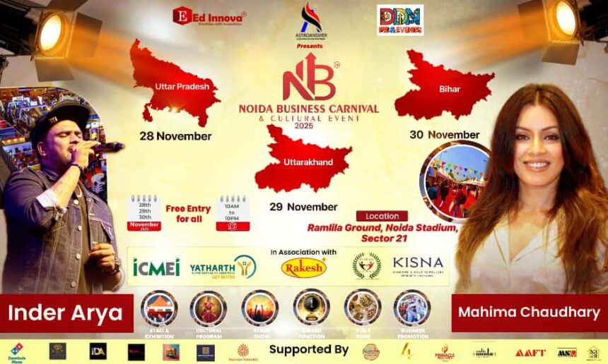 Noida is set to celebrate its vibrant cultural diversity and entrepreneurial spirit with the Noida Business Carnival & Cultural Event 2025, to be held on 28th, 29th and 30th November at the Noida Stadium. This year’s theme highlights the rich heritage of Uttar Pradesh, Uttarakhand and Bihar, bringing together the essence of three culturally dynamic states.