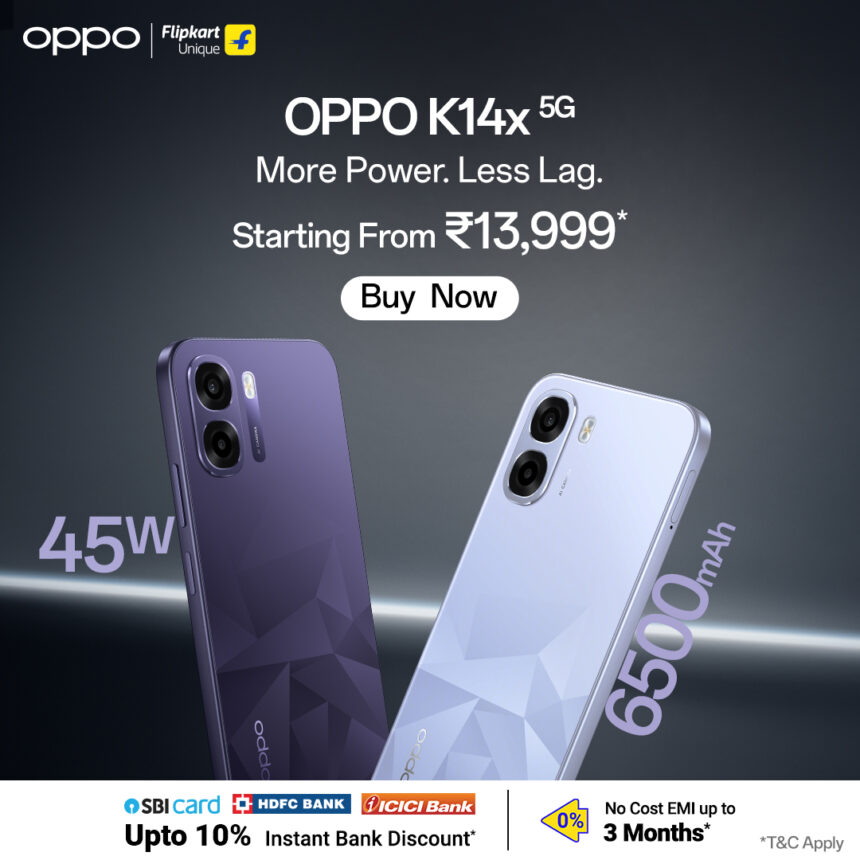 New Delhi, February 16, 2026: OPPO India’s recently launched K14x 5G goes on sale today, 16 February 2026, across Flipkart  and the OPPO India E-store. Designed to deliver Power, Performance and Smoothness for worry-free everyday use, the OPPO K14x 5G combines long-lasting battery life, smooth system performance, and a premium, durable design making it a dependable all-rounder for students, early jobbers, and value-conscious users.