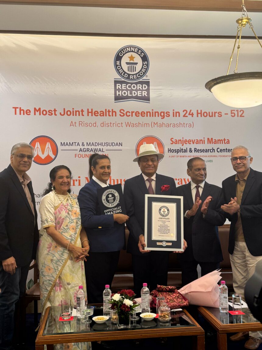 Mumbai, December 5: The Mamta & Madhusudan Agrawal Foundation, led by philanthropist Shri Madhusudan Agrawal, Vice Chairman & Co-founder, Ajanta Pharma and Hon. Consul of the Republic of Uganda, has set a Guinness World Records title for conducting the highest number of knee screenings in 24 hours as part of its Pain-Free Maharashtra initiative.