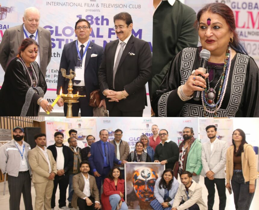 Renowned artist Kanchan Mehra’s painting exhibition emerged as a major highlight on the second day of the 18th Global Film Festival Noida 2025, captivating art enthusiasts and international dignitaries alike at Marwah Film City in Noida. These impressive artworks were highly appreciated by H.E. Mahishini Colon, High Commissioner of Sri Lanka, renowned actor Darshan Jariwala, youth icon Srishti Kaur, and Sharifa Eznida Wafa, Deputy High Commissioner of Malaysia, who praised the depth, emotion, and global sensibility reflected in the paintings.