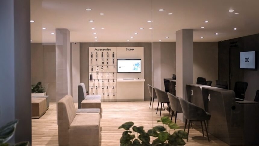 Customers are welcomed into plush seating areas equipped with built-in wireless charging stations, while large-format digital displays showcase the latest Galaxy ecosystem innovations. Dedicated interaction kiosks provide personalised product assistance and hands-on exploration of new smartphone launches, transforming what was once a routine repair visit into a more engaging brand experience. Integrated online appointment booking further enhances efficiency, enabling customers to schedule visits in advance and significantly reduce waiting times.