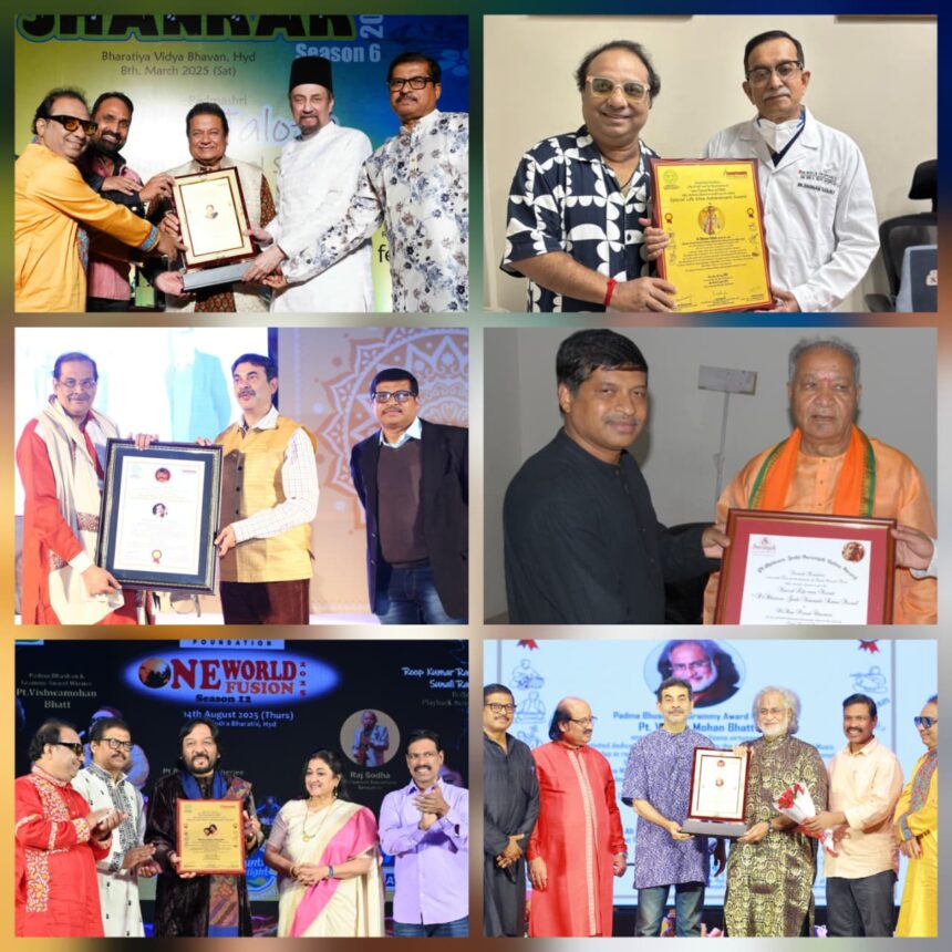 “Abhijeeth Bhattacharjee & Pt.Prodyut Mukherjee of Sangitanjaly Foundation Honours Renowned Individuals for Their Contributions to Society”