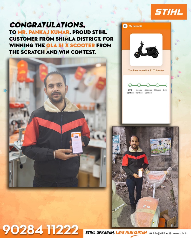 This festive season, STIHL India is celebrating its customers with the biggest ever nationwide Scratch & Win Contest through the STIHL Addvantage App. Every single eligible purchase of battery-powered, electric, or power weeder products guarantees an instant reward with no exceptions.