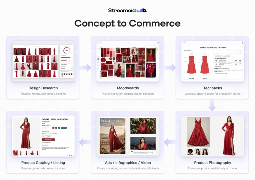 Artifax (Design Intelligence) turns trend and sales signals into concept boards and factory-ready tech packs, compressing design cycles from ideation to specs. Photogenix (Studio OS, Ads & Video) orchestrates shoots, enforces brand guidelines and generates on-model and lifestyle imagery and short-form video, reducing production overhead even for difficult categories such as kidswear. Catalogix (Product Data & Listings) ingests information from internal systems and approved external sources, enriches product content with Streamoid’s proprietary AI, and publishes consistent listings across any channel.