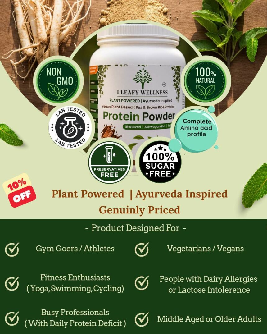 What sets The Leafy Wellness apart is its integration of Ayurvedic herbs into a modern protein formulation. Ingredients such as: