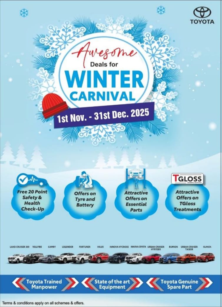 The Winter Carnival will be available across NCR, Uttar Pradesh, Uttarakhand, Rajasthan, Haryana, Punjab, Jammu & Kashmir, and Himachal Pradesh at all authorized Toyota dealerships, and will run from November to December 2025.